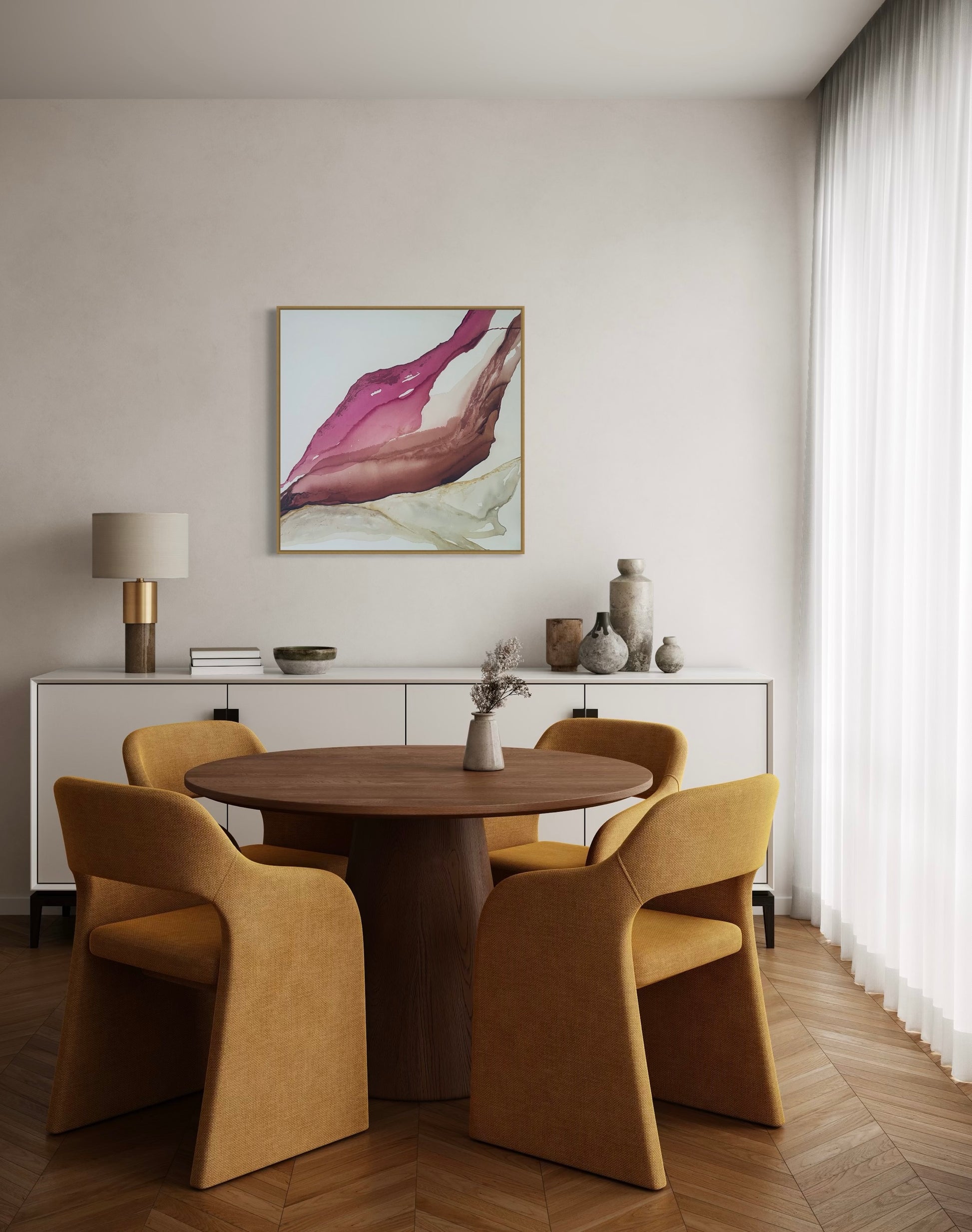 Drawn from the beauty and movement of oceans and rivers stretching from Biarritz to Carmel, this nature-inspired collection is brought to life with the fluidity of acrylic paints and inks.