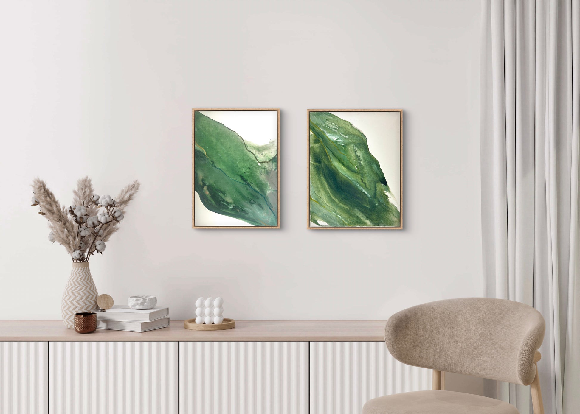 Drawn from the beauty and movement of oceans and rivers stretching from Biarritz to Carmel, this nature-inspired collection is brought to life with the fluidity of acrylic paints and inks.