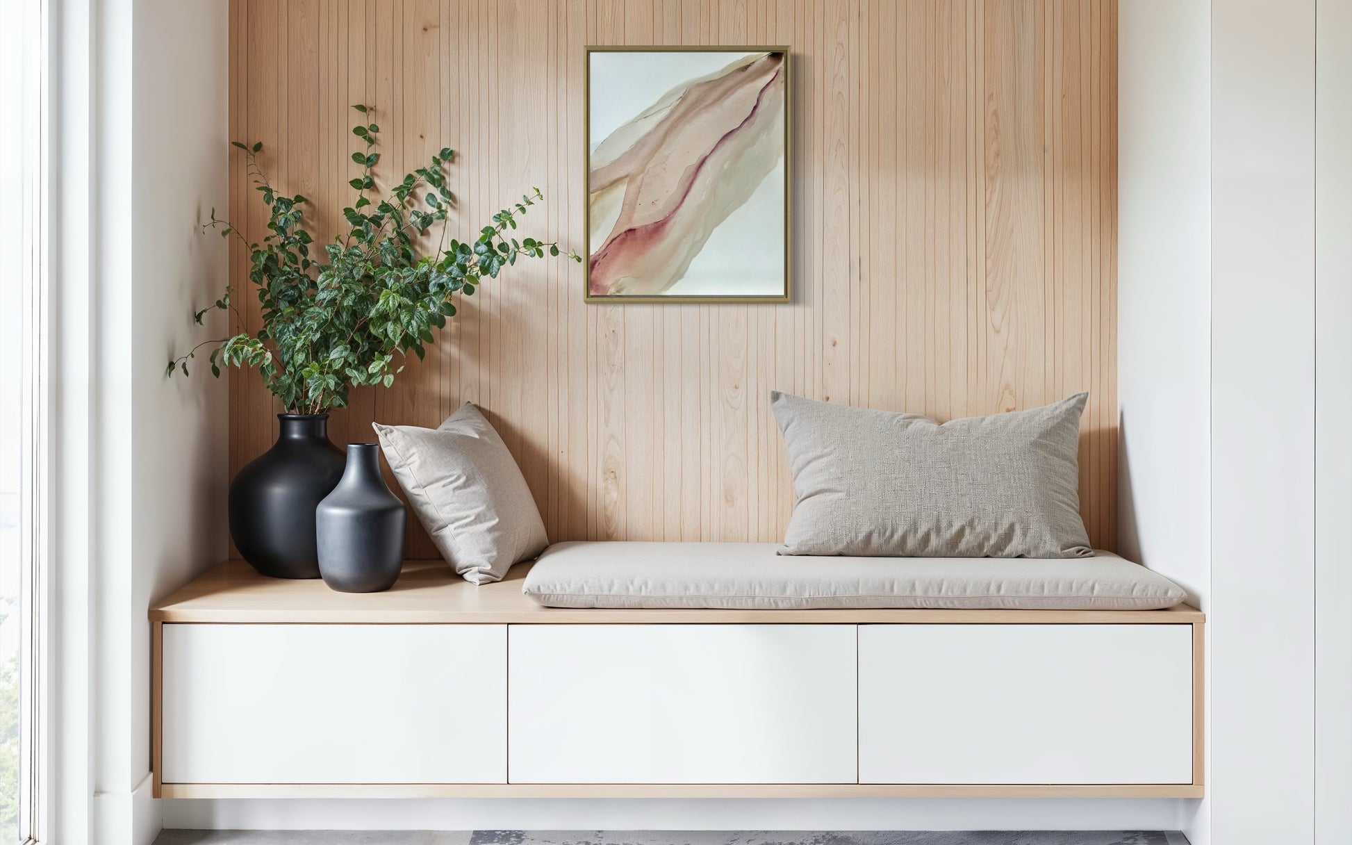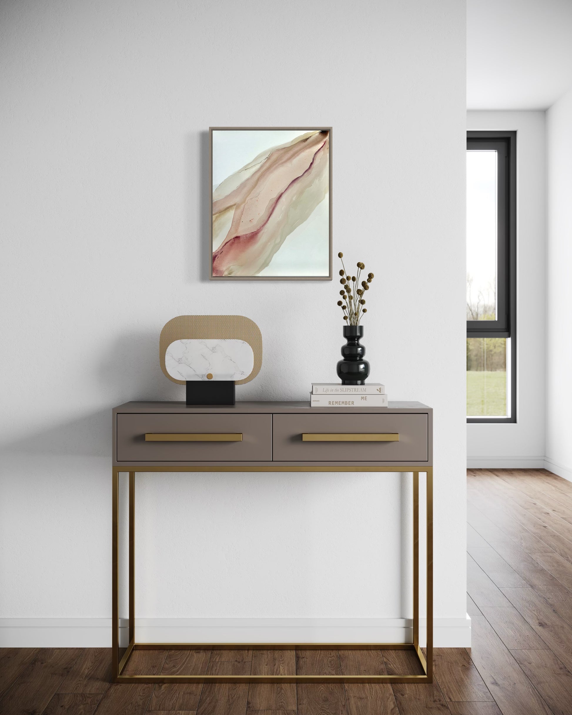 Framed in a natural float frame.