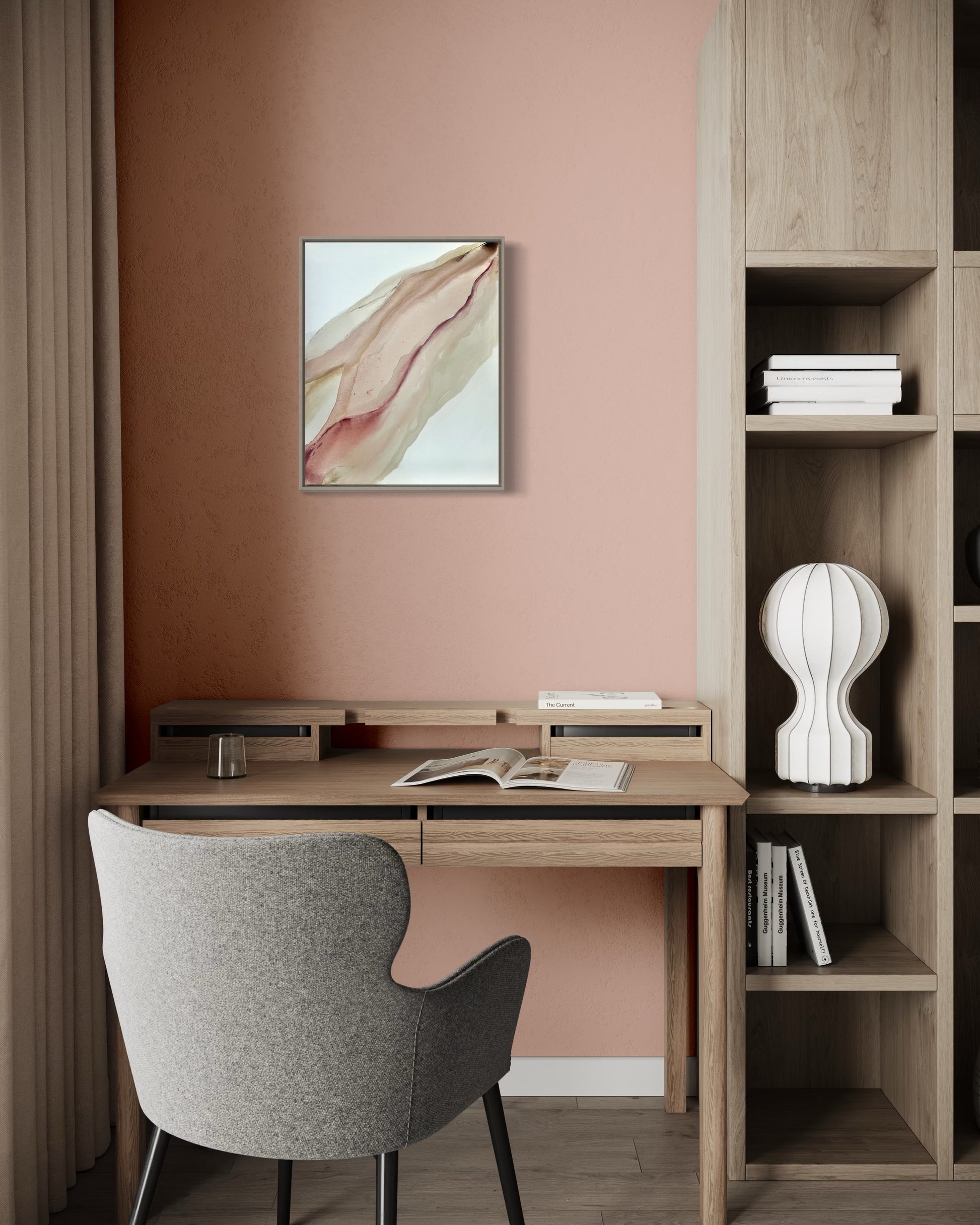 Drawn from the beauty and movement of oceans and rivers stretching from Biarritz to Carmel, this nature-inspired collection is brought to life with the fluidity of acrylic paints and inks.