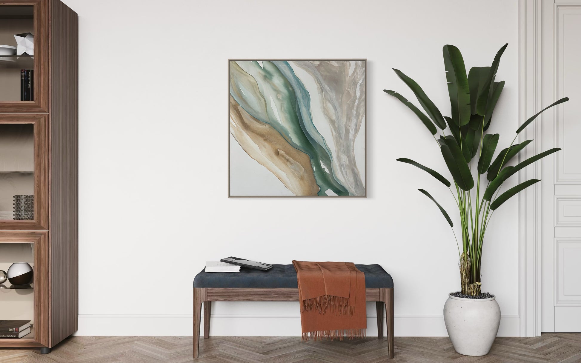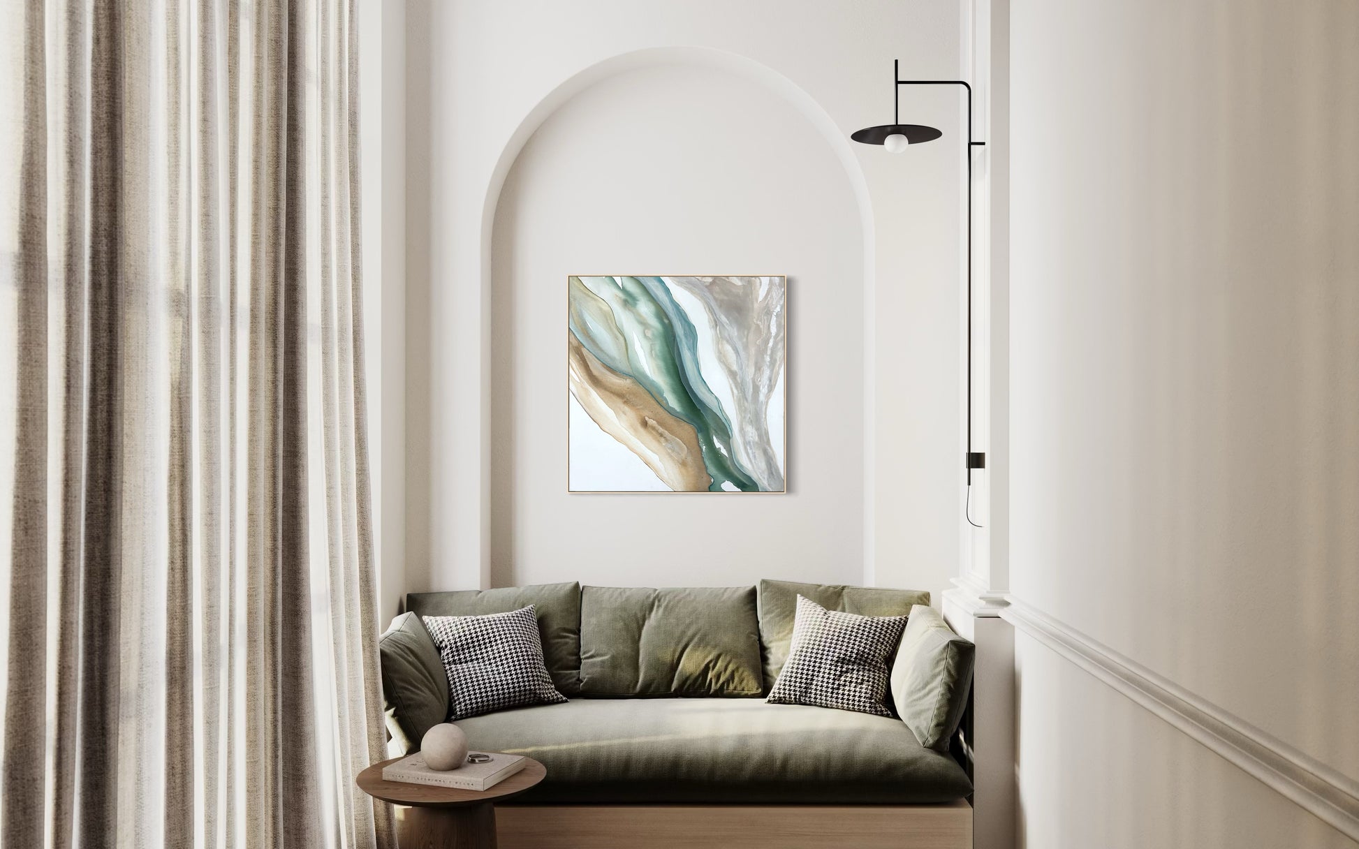 Drawn from the beauty and movement of oceans and rivers stretching from Biarritz to Carmel, this nature-inspired collection is brought to life with the fluidity of acrylic paints and inks.